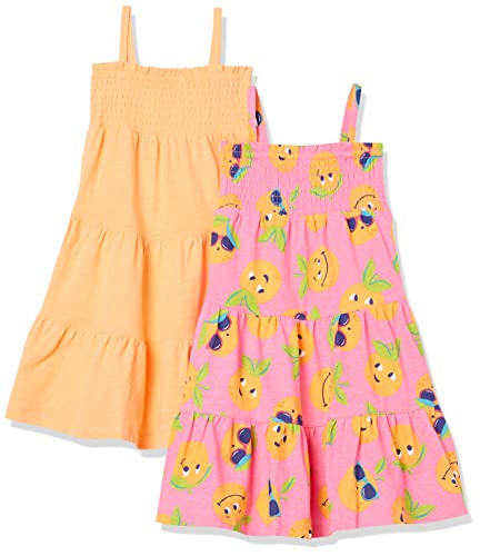 Amazon Essentials Abiti Midi a Balze Senza Maniche in Maglia Punto Smock (in precedenza Spotted Zebra) Bambine e Ragazze, Pacco da 2, Pesca, Arance, 11-12 Anni