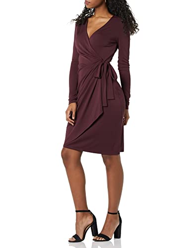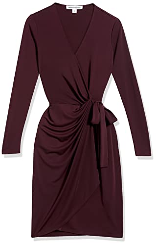 Amazon Essentials Abito Classico Avvolgente a Maniche Lunghe (Taglie Forti Disponibili) Donna, Bordeaux, XS