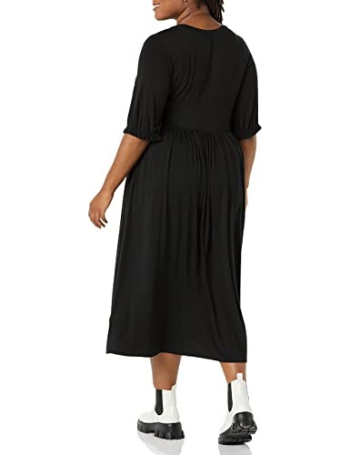 Amazon Essentials Abito Midi a Girocollo in Maglia a Maniche Corte (Taglie Forti Disponibili) Donna, Nero, M