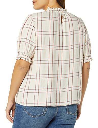 Amazon Essentials Blusa Chemisier Corta con Maniche A Sbuffo in Twill Fluido Donna, Ecru, Motivo Scozzese, XS