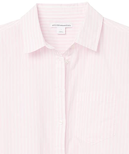 Amazon Essentials Camicia Button-Down in Popeline a Maniche Lunghe con vestibilità Classica Donna, Rosa Righe, S
