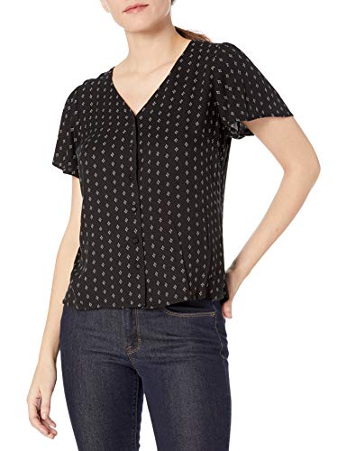 Amazon Essentials Camicia a Maniche Corte con Bottoni Rivestiti in Twill Fluido (in precedenza Goodthreads) Donna, Nero, Stampa Medaglioni, S