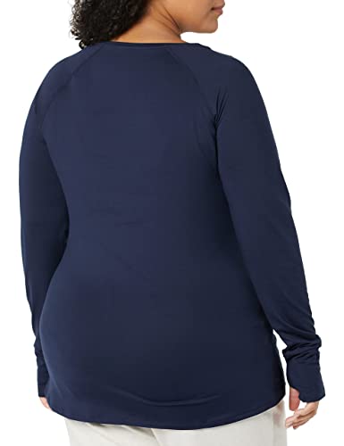 Amazon Essentials Maglia Girocollo a Maniche Lunghe Elasticizzata Tecnica Spazzolata (Taglie Forti Disponibili) Donna, Blu Marino, XXL