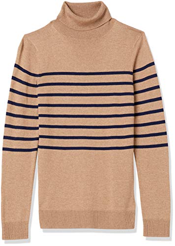 Amazon Essentials Maglione A Collo Alto E Maniche Lunghe Leggero con vestibilità Classica (Taglie Forti Disponibili) Donna, Blu Marino Cammello Riga Piazzata, L