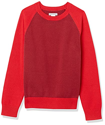 Amazon Essentials Maglione a Girocollo Bambini e Ragazzi, Rosso Color Block, 2 Anni