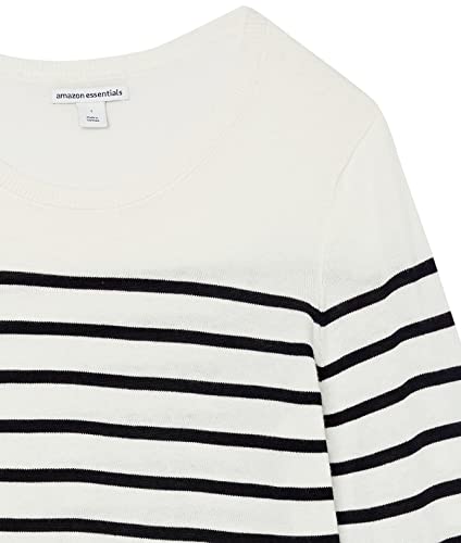 Amazon Essentials Maglione Girocollo Leggero A Maniche Lunghe (Taglie Forti Disponibili) Donna, Bianco/Nero, Riga Piazzata, XS