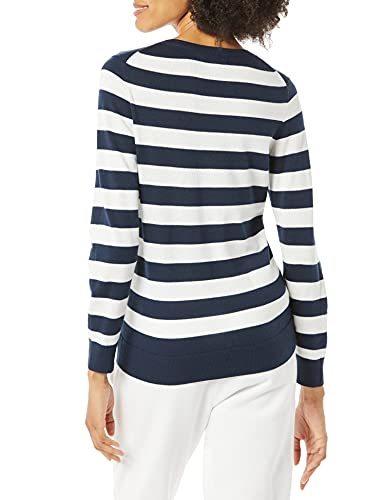 Amazon Essentials Maglione con Scollo A v A Maniche Lunghe Leggera con vestibilità Classica (Taglie Forti Disponibili) Donna, Blu Marino/Bianco, Righe, S