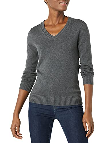 Amazon Essentials Maglione con Scollo a v a Maniche Lunghe 100% Cotone Donna, Carbone Puntinato, XS