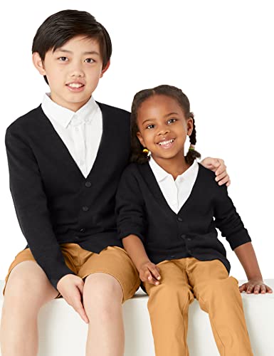 Amazon Essentials Maglioni cardigan in cotone da uniforme Unisex Bambini, Nero, 2 anni