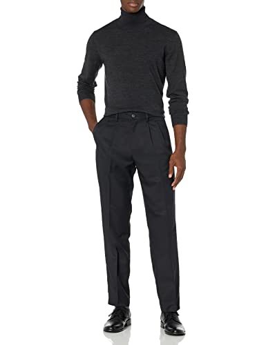Amazon Essentials Pantaloni da Abito con Pinces con Vita Espandibile in Vita e Vestibilità Classica Uomo, Nero, 42W / 34L