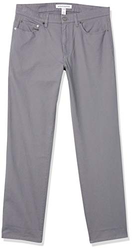 Amazon Essentials Pantaloni in Twill Elasticizzati con 5 Tasche con vestibilità Comoda Uomo, Grigio Scuro, 42W / 32L