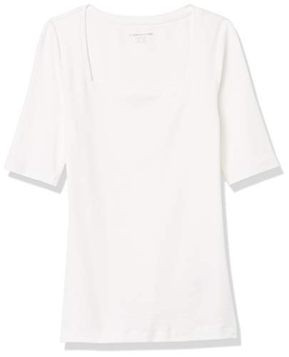 Amazon Essentials T-Shirt Aderente con Scollo Quadrato e Mezze Maniche Donna, Bianco Brillante, S