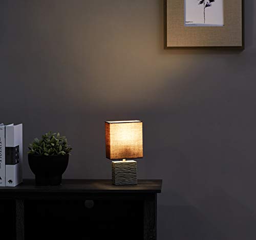 Umi. by Amazon, lampada da tavolo, paralume in tessuto, con base rettangolare in legno, 29,2 cm