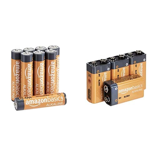 AmazonBasics Batterie alcaline per uso quotidiano, 9V, confezione da 4 (l'aspetto potrebbe variare dall'immagine) & Batterie alcaline AAA 1.5 Volt, Performance, confezione da 8