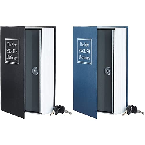 AmazonBasics Cassetta portavalori a forma di libro, Serratura con chiave, Nero & Cassetta portavalori a forma di libro, Serratura con chiave, Blu