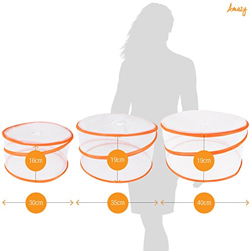 Amazy Coprivivande in Rete (Set di 3) - Rete Copertura Alimenti, a Maglia fine per Proteggere Il Cibo e Le Bevande dagli Insetti (Set | Ø 30/35/39 cm)