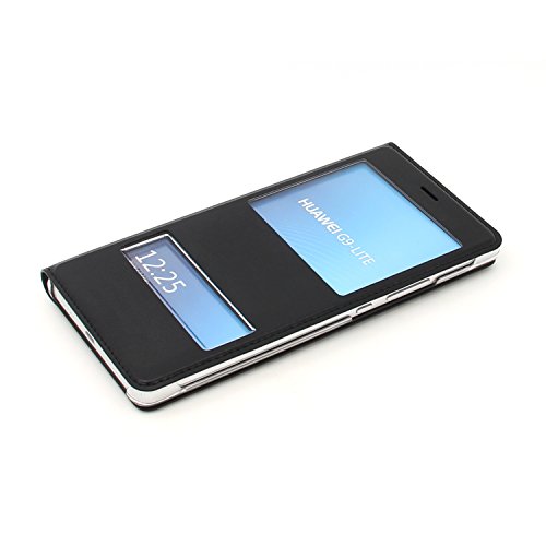 Ambaiyi Flip Custodia in Pelle Protettiva e View Finestra Cover per Huawei P9 Lite, Huawei P9 Lite Cover, Nero