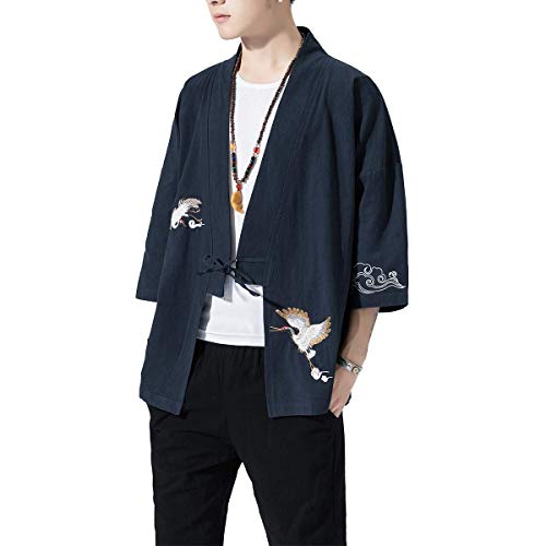Ambcol Kimono Giacche Cardigan Leggero Casual Cotone Lino Misto Manica 3/4 Aperto Fronte Cappotto Outwear, 17 blu navy, S