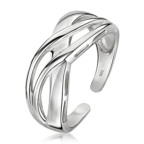Amberta Anelli in Argento Sterling 925 - Anello Aperto Regolabile per Donna - Modello Nodo Celtico Traforato - Diametro Interno: 18.7 mm - Taglia 17 1/8
