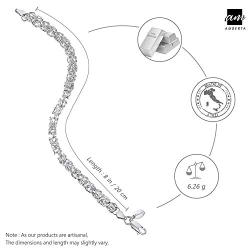 Amberta Bracciale Bizantino Unisex in Argento Sterling 925: 20 cm - Design Rotondo