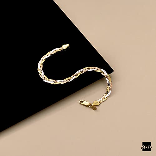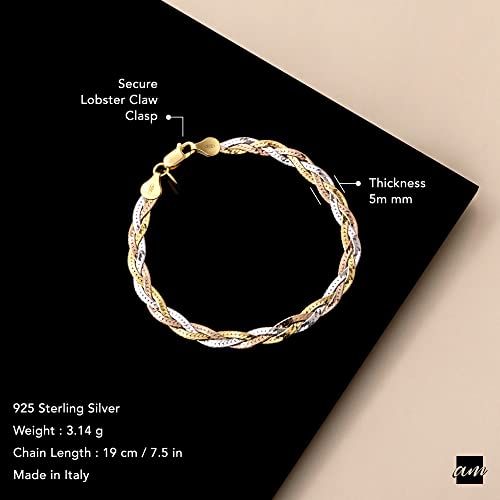 Amberta Bracciale da donna in argento 925/1000, maglia a specchio, 5 mm, lunghezza 19 cm, 19 cm, Argento sterling, Senza pietra