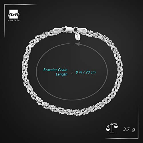 Amberta Bracciale da Donna in Argento Sterling 925 Lunghezza 20 cm: Sfere Perline Effetto Diamantato 3.5 mm