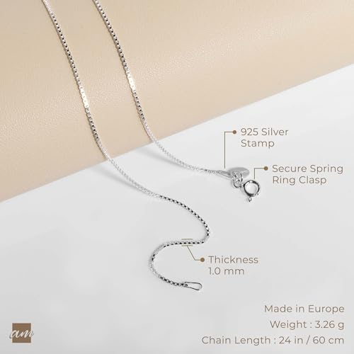 Amberta Catenina Collana da Donna in Argento Sterling 925 Maglia Veneziana 1 mm