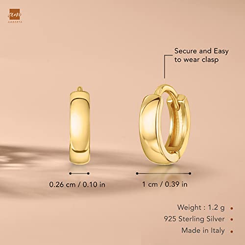 Amberta Cerchi in Argento Sterling 925 - Placcato Oro 18K - Cerchio Orecchini - Huggie Orecchini - Diametro: 10 mm