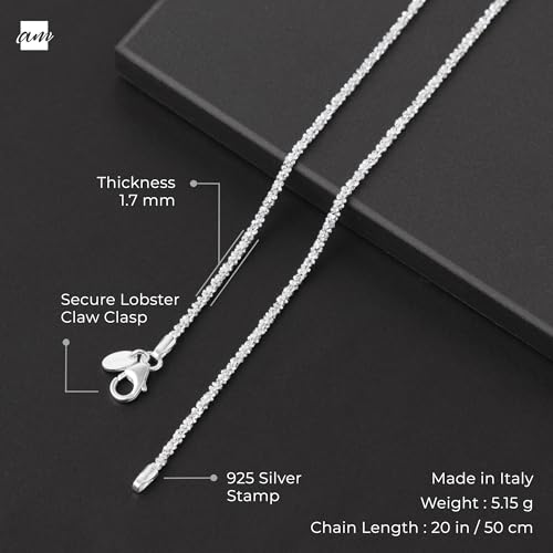 Amberta Collana Diamantata in Argento Sterling 925 per Donna - Collana Popcorn in Argento 1.7mm: Collana Donna Argento senza Ciondolo 50 cm