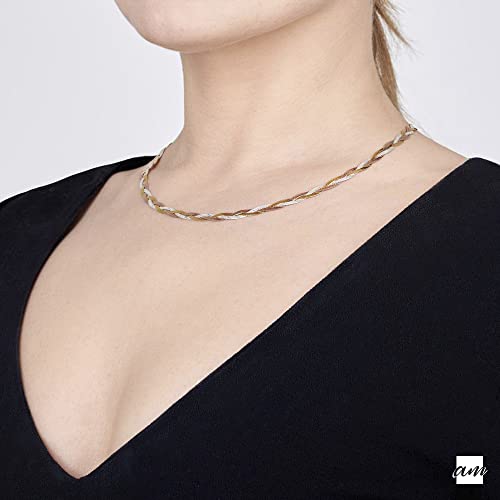 Amberta Collana da Donna in Argento Sterling 925 Maglia Spina di Pesce 5 mm Lunghezza 45 cm - Multicolore