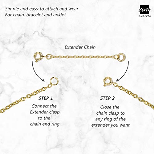 Amberta Set di 3 Estensori per Collane in Argento Sterling 925 Placcati Oro Giallo 18K - Kit di Catenine 2 mm per Allungare Bracciali e Cavigliere per Donna - Lunghezze: 25, 50 e 100 mm