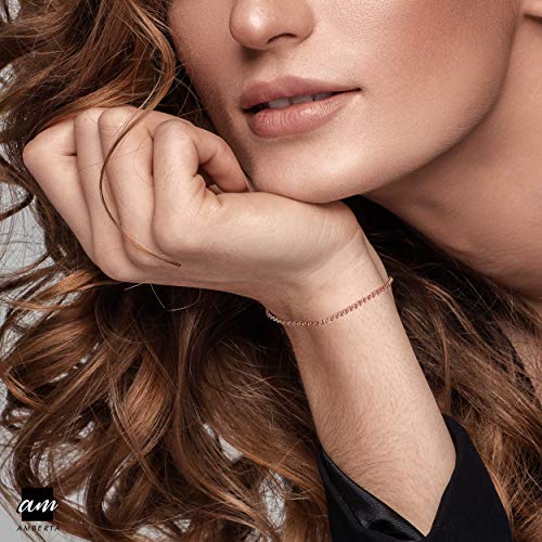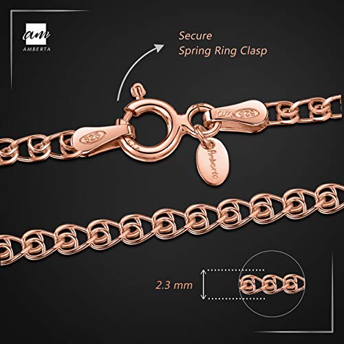 Amberta Gioielli - Bracciale - Catenina Argento Sterling 925 - Placcato Oro Rosa da 14k - Modello Cuore - Larghezza 2.3 mm - Lunghezza: 19 cm