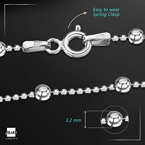 Amberta Gioielli - Catenina da Caviglia Argento Sterling 925 - Modello Sfere 3,2 mm - Regolabile da 22 a 25,5 cm - Misura Flessibile