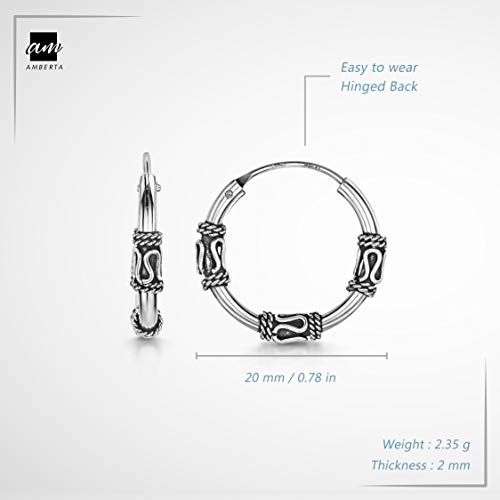 Amberta Orecchini a Cerchio Stile Bali in Argento Sterling 925 per Donna: Motivo Etnico 20 mm