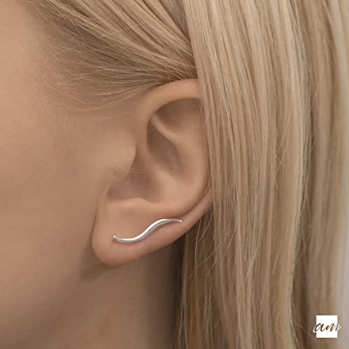 Amberta Orecchini Climber per Donna in Argento Sterling 925: Orecchini a Lobo Onda
