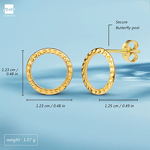 Amberta Orecchini Minimal da Donna in Argento Sterling 925: Cerchietto Martellato Placcato Oro