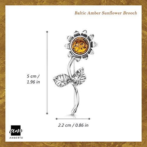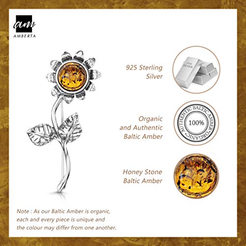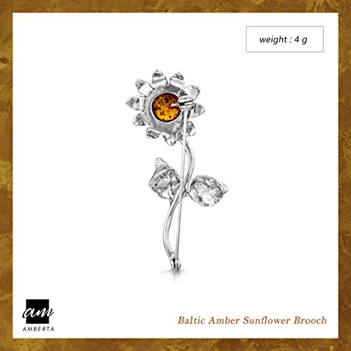 GIOIELLI DI QUALITÀ PREMIUM - I Gioielli Amberta sono creati per durare tutta la vita. Questa spilla a forma di girasole e' prodotta in raffinato Argento Sterling 925 ed Ambra Baltica Naturale.
