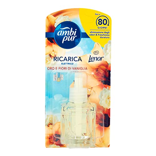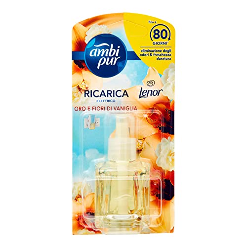 Ambi Pur Oro e Fiori di Vaniglia Ricarica Diffusore Elettrico per Ambienti 20 ml, per Rimuovere gli Odori