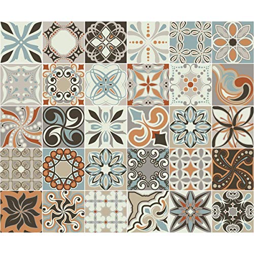 Ambiance 20 Piastrelle Adesive | Stickers autoadesivi a Forma di mattonelle da Muro in Ceramica Effetto Mosaico Bagno e Cucina | azulejos - 20 x 20 cm - 30 Pezzi
