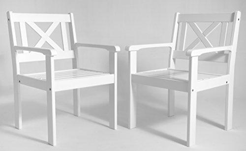 Ambiente Casa Sedia del Rattan mobili da Giardino in Legno Massiccio Evje, Bianco, Set di 2 Pezzi