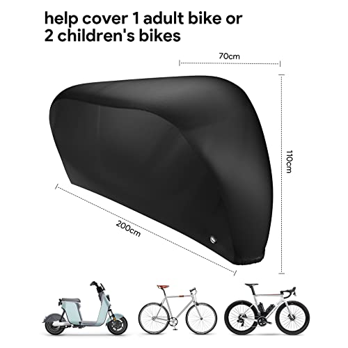 [Facile da usare]: le coperture per bici con il design elastico, l'installazione non potrebbe essere più semplice. Basta lanciarlo, allacciarlo. le dimensioni delle coperture per bici sono 200 x 110 x 90 cm, possono aiutare a coprire 1 bici per adulti o 2 bici per bambini!
