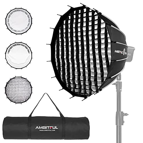 AMBITFUL PS60 60 cm Portable Quickly Fast Installation Deep Parabolic Softbox Bowens Mount with Honeycomb Grid for Tiktok YouTube, Gaming, Zoom, Video Recording
