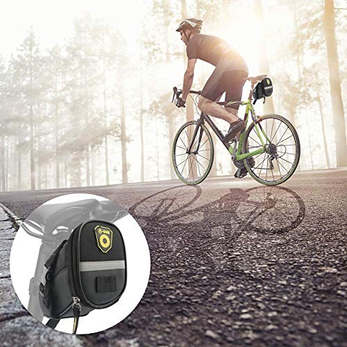 【Borsa da sella di buona fattura】 La borsa resistente e funzionale è ben realizzata e può essere facilmente fissata alla sella e al reggisella. L'installazione è semplice e veloce grazie alle cinghie a clip e alla chiusura in velcro. Una striscia riflettente garantisce una migliore visibilità al buio .