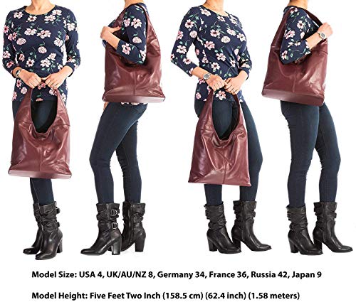 AMBRA Moda WL818, pochette, borsa a tracolla, shopper, da donna, in vera pelle, Grigio (Grigio antracite), X-Large