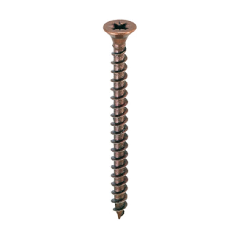 Modello 05052 in acciaio bronzato per pannelli di legno truciolare conglomerato. Taglio a croce PZ. Testa svasata piana. Diametro 4 mm Lunghezza 50 mm