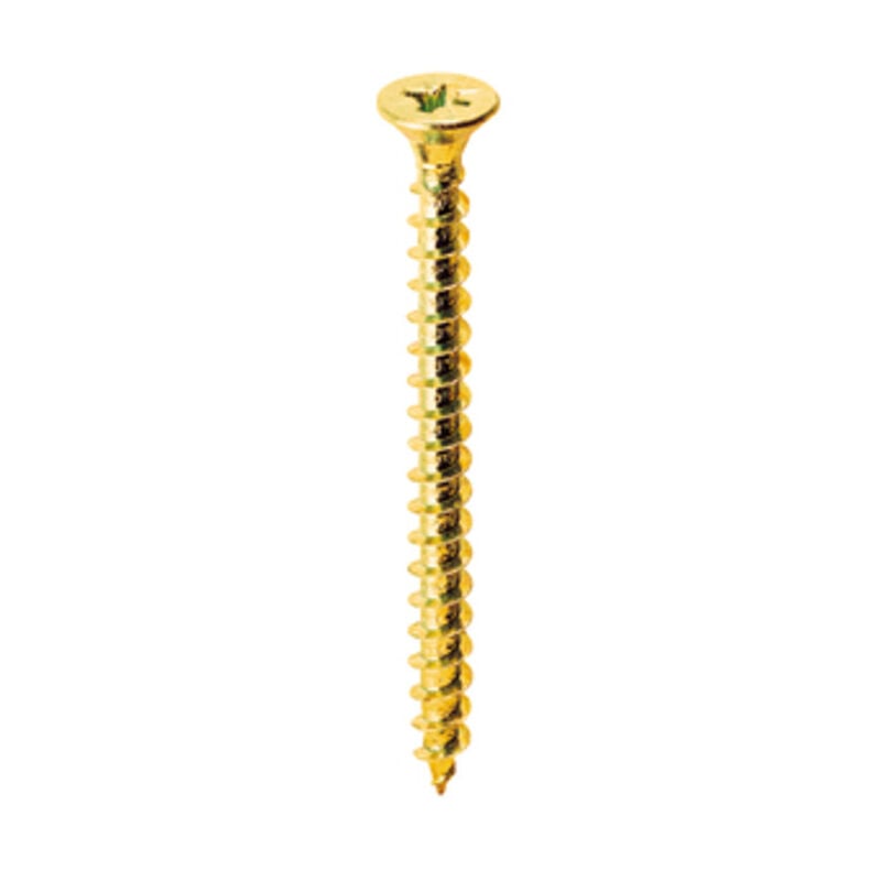 Modello 05052 in acciaio ottonato per pannelli di legno truciolare conglomerato. Taglio a croce PZ. Testa svasata piana. Diametro 4 mm Lunghezza 35 mm