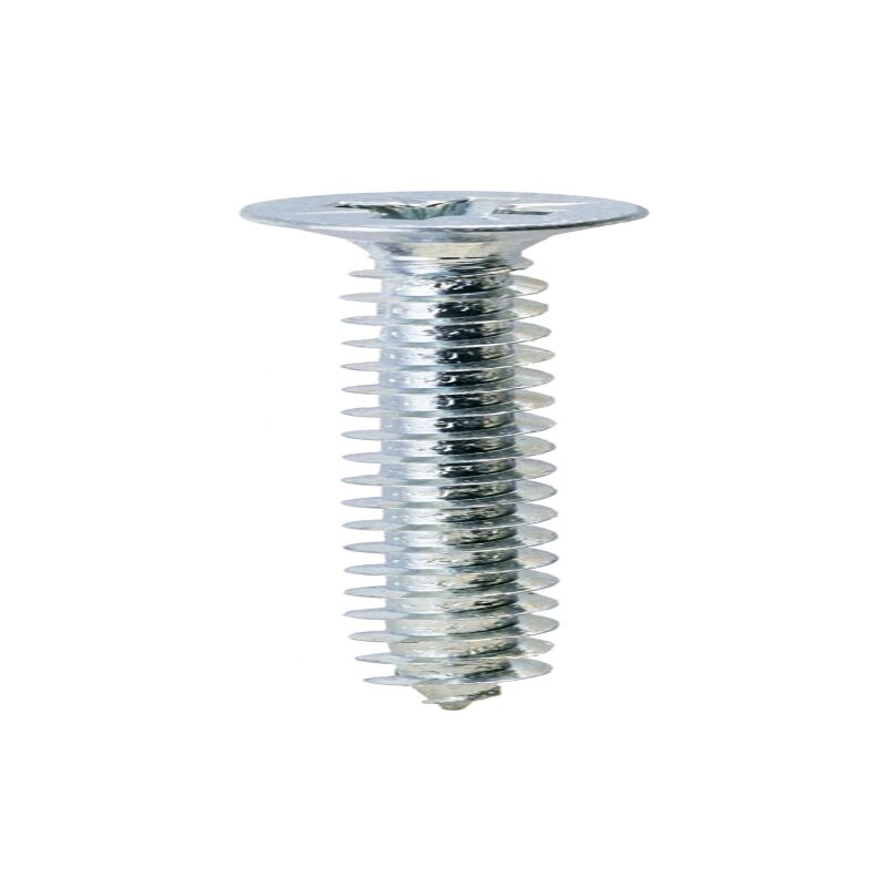 In acciaio zincato temperato. Articolo 05052 per pannelli di legno truciolare conglomerato. Taglio a croce PZ. Testa svasata piana. Lunghezza 35 mm Diametro 3 mm