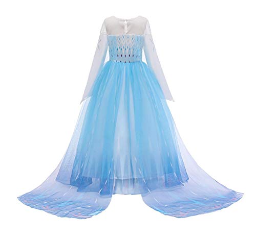 O.AMBW Vestito da Principessa Elsa Costume Regina del Ghiaccio delle Nevi Abito Accessori per Compleanno Natale Carnevale Cosplay Halloween Festa Abiti,Blu-abito+accessori,150
