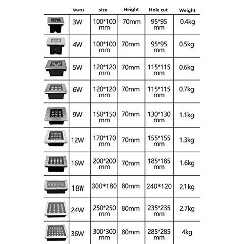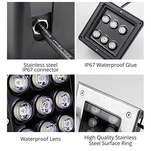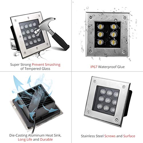【ILLUMINAZIONE DI AGGIORNAMENTO】 Luci da incasso a pavimento quadrate a LED, chip LED ad alta luminosità, angolo del fascio di illuminazione verso l'alto di 60 gradi. Calore basso e tensione di uscita, sicurezza al 100% per le persone