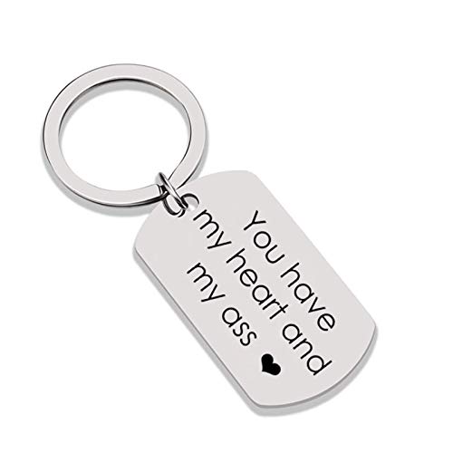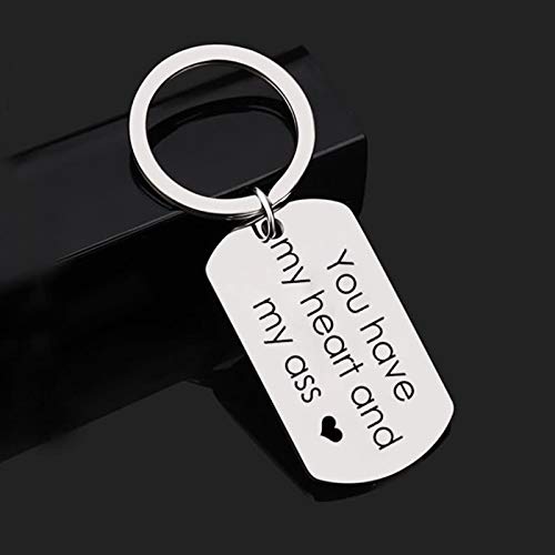 AMDXD Acciaio Inossidabile Portachiavi Uomo E Donna You Have My Heart And My Ass Argento Portachiavi con Etichetta